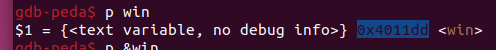 간단하게 p win 하면 알수있다 그러면 win 함수의 주소는 0x4011dd 라는걸 알수있다
