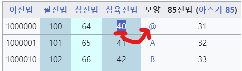 40 은 어디 간건지 물을수있는데 이는 ASCII 코드를 생각하면 알수있다
