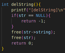 delString 은 free(str) 을해주고 Null로 초기화시켜주지않았다