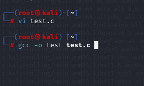 먼저 Kali에서 vi test.c 로 아래처럼 만들어준다