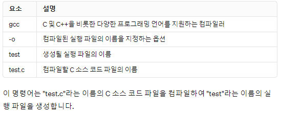 그리고 gcc -o test test.c 로 컴파일 시킨다